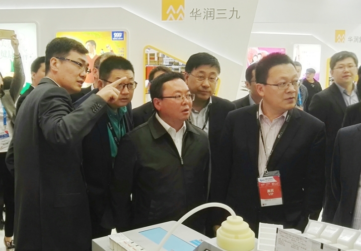 參加開(kāi)幕式之后,華潤(rùn)醫(yī)藥董事長(zhǎng)王春城、常務(wù)副總經(jīng)理李向明、高級(jí)副總經(jīng)理馮毅等親臨華潤(rùn)三九展臺(tái)參觀指導(dǎo)。華潤(rùn)三九助理總裁朱百如對(duì)公司展臺(tái)作了展示介紹?!?/p>