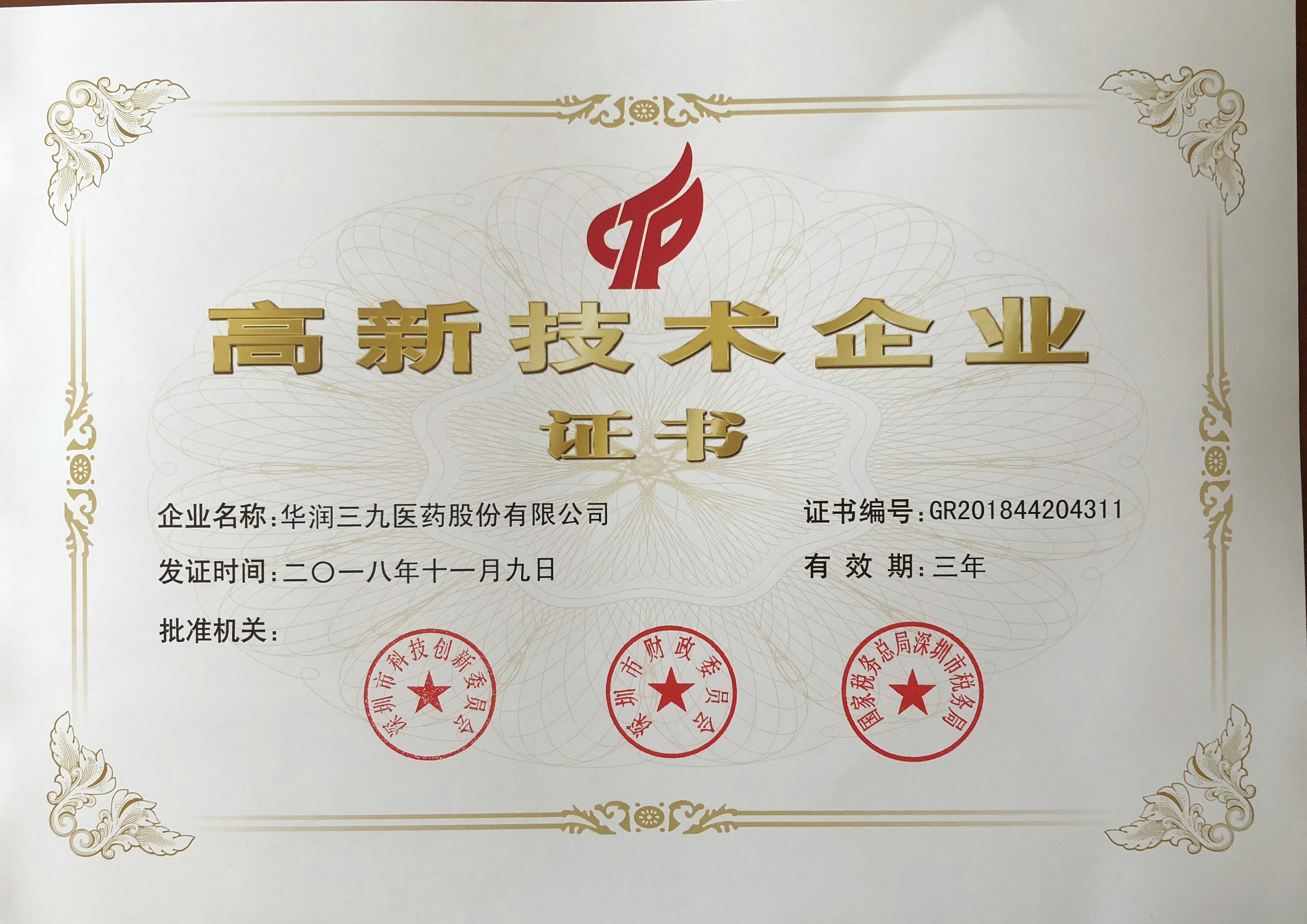 了解更多>>>華潤三九再次通過國家高新技術(shù)企業(yè)認(rèn)定