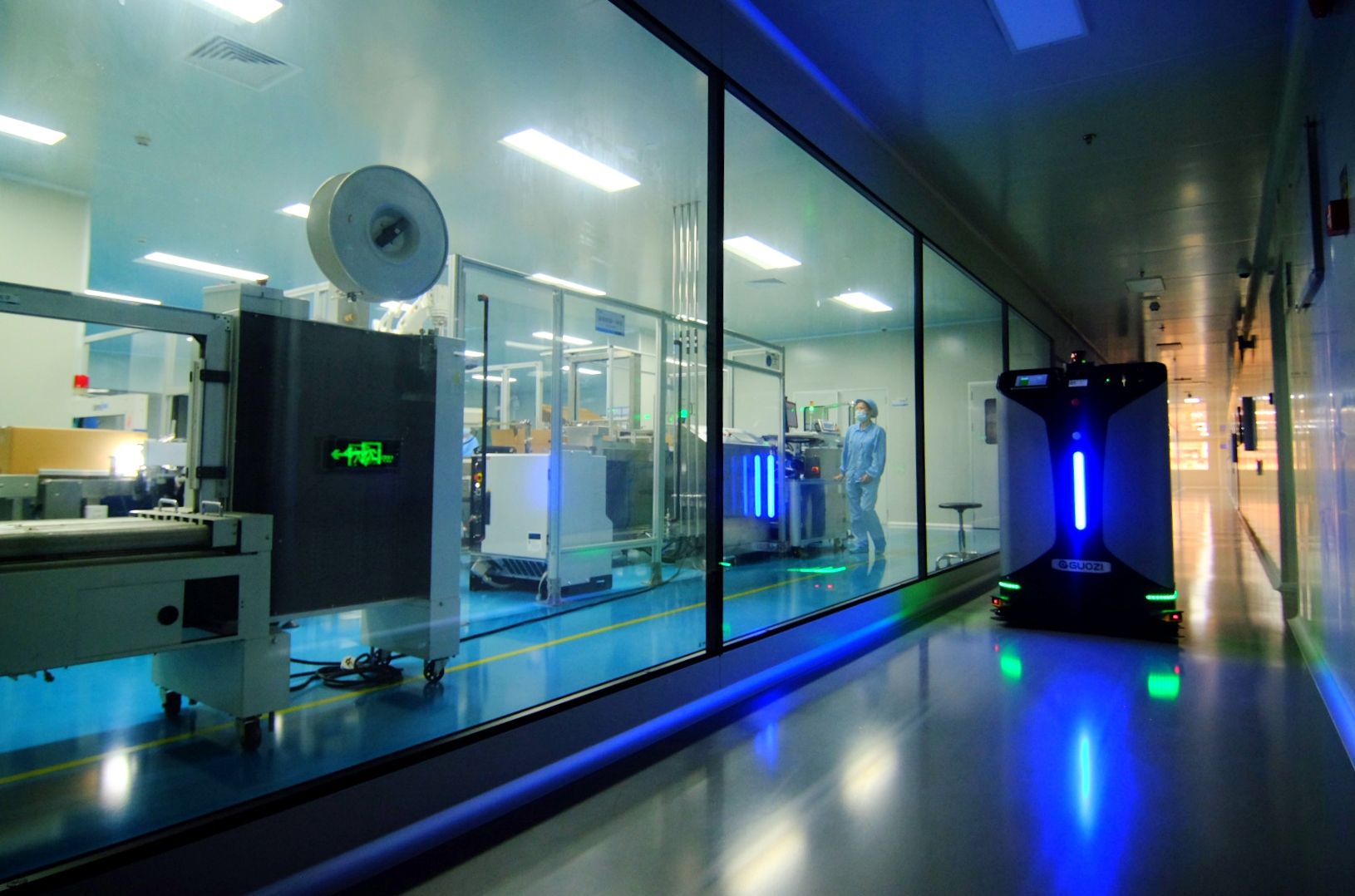 走進華潤三九觀瀾生產(chǎn)基地的智能制造中控中心,記者從監(jiān)控大屏看到,自動化生產(chǎn)設備排列有序,高效運轉(zhuǎn);國內(nèi)潔凈區(qū)首條AGV運輸線來回穿梭,各種原料源源不斷被運回;偌大的制藥車間,幾乎看不到工人。