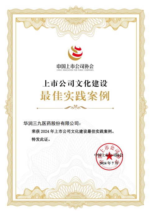 華潤三九獲評“2024年上市公司文化建設最佳實踐案例”