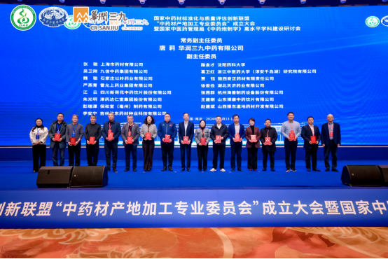 12月14日,華潤(rùn)三九聯(lián)合南京中醫(yī)藥大學(xué)在南京舉辦國(guó)家中藥材標(biāo)準(zhǔn)化與質(zhì)量評(píng)估創(chuàng)新聯(lián)盟(簡(jiǎn)稱“聯(lián)盟”)中藥材產(chǎn)地加工專業(yè)委員會(huì)(簡(jiǎn)稱“專委會(huì)”)成立大會(huì),華潤(rùn)三九中藥有限公司當(dāng)選為常務(wù)副主任委員單位、副秘書(shū)長(zhǎng)單位,華潤(rùn)三九中藥資源研究院院長(zhǎng)唐莉當(dāng)選為首屆常務(wù)副主任委員,華潤(rùn)三九(六安)、安徽潤(rùn)芙蓉等當(dāng)選為委員單位。