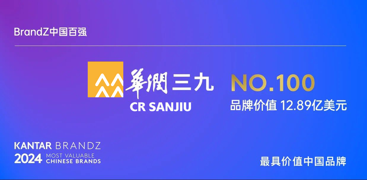 華潤三九再次上榜“2024凱度BrandZ最具價值中國品牌100強”