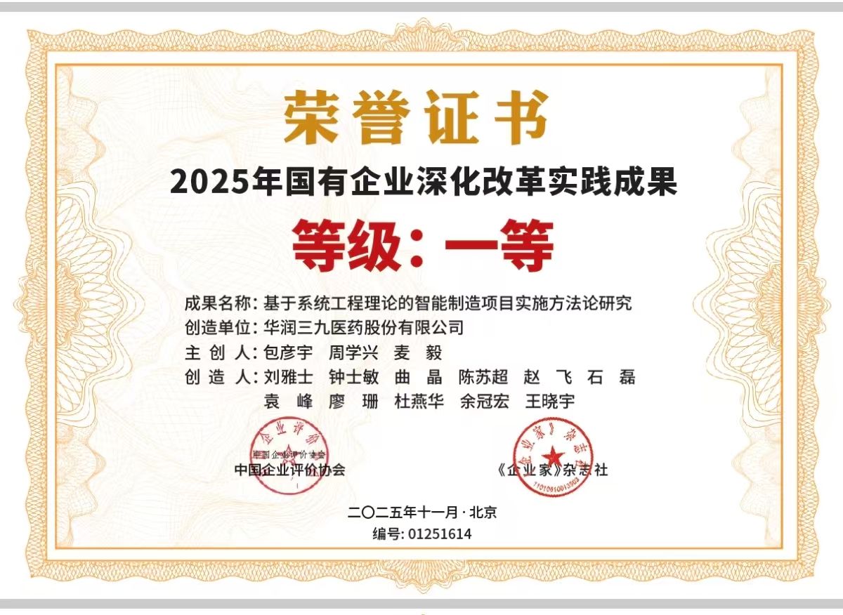 近日,2025企業(yè)改革與發(fā)展創(chuàng)新實(shí)踐交流會(huì)暨優(yōu)秀企業(yè)管理實(shí)踐成果(案例)發(fā)布會(huì)在北京召開。會(huì)上,華潤三九兩項(xiàng)實(shí)踐成果(案例)分別榮獲一等獎(jiǎng)。其中,“基于系統(tǒng)工程理論的智能制造項(xiàng)目實(shí)施方法論研究”課題榮獲“國有企業(yè)深化改革實(shí)踐成果一等獎(jiǎng)”,“基于戰(zhàn)略和業(yè)務(wù)需求的公輔AI智慧能源管理平臺(tái)”項(xiàng)目榮獲“數(shù)字化智能化科技創(chuàng)新典范(案例)一等獎(jiǎng)”。