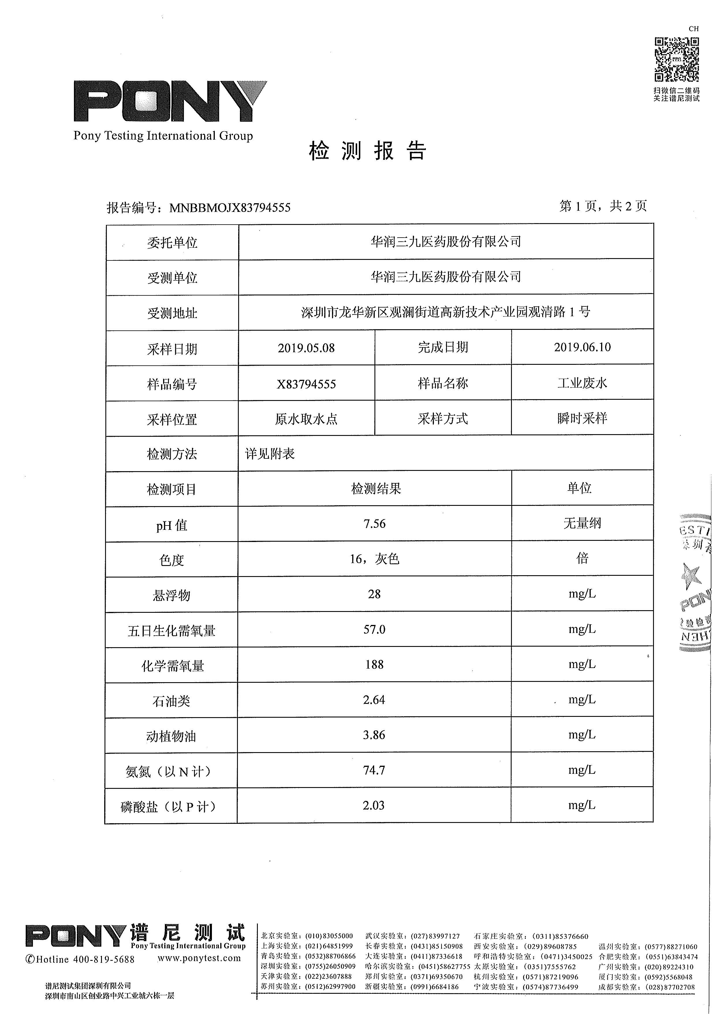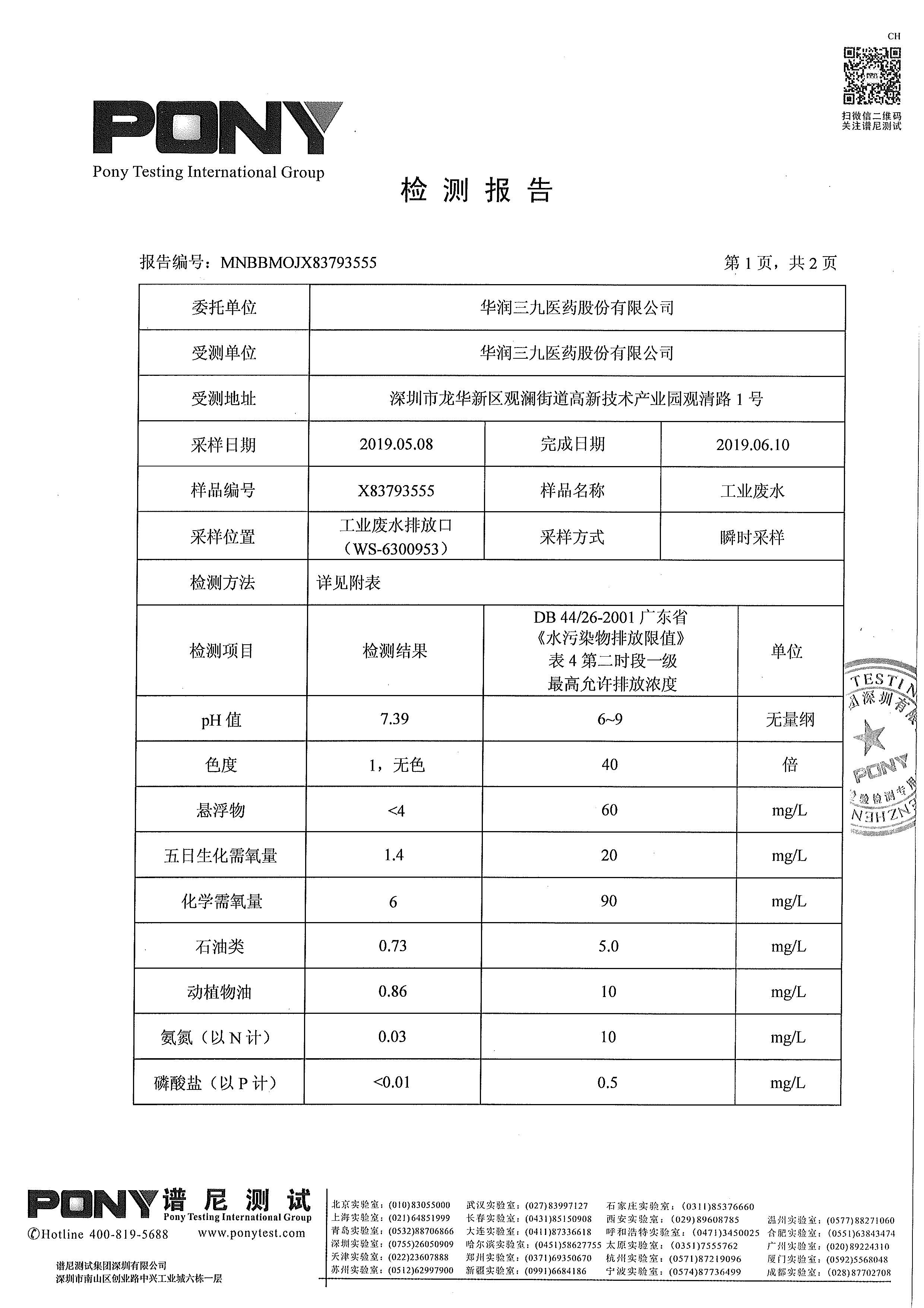 華潤三九醫(yī)藥觀瀾基地2019年環(huán)保信息公開