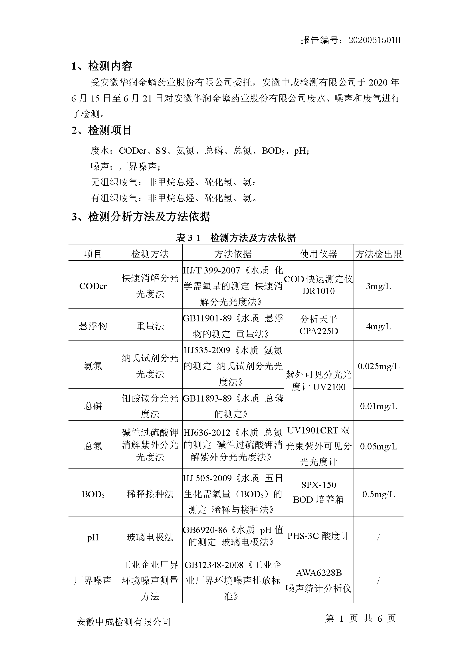 華潤金蟾污染物排放檢測報告(2020年二季度)