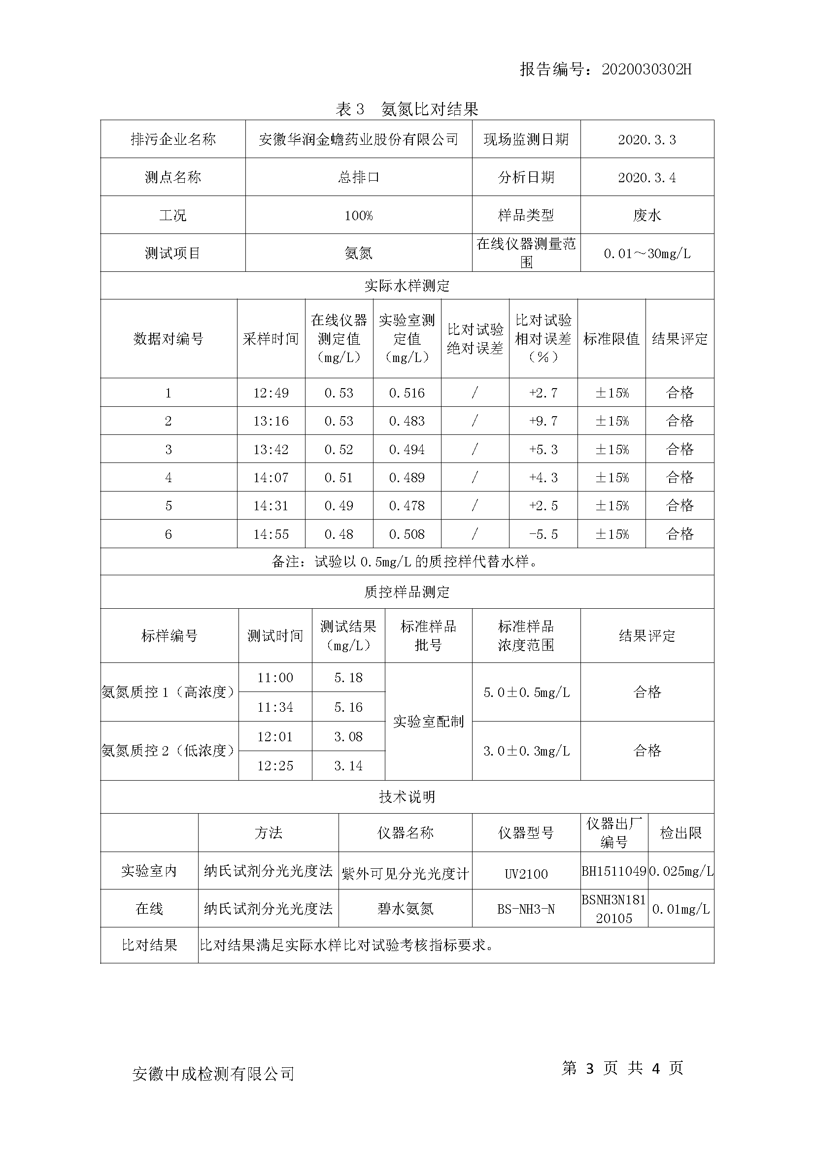 華潤金蟾污染物排放檢測報告(2020年一季度)