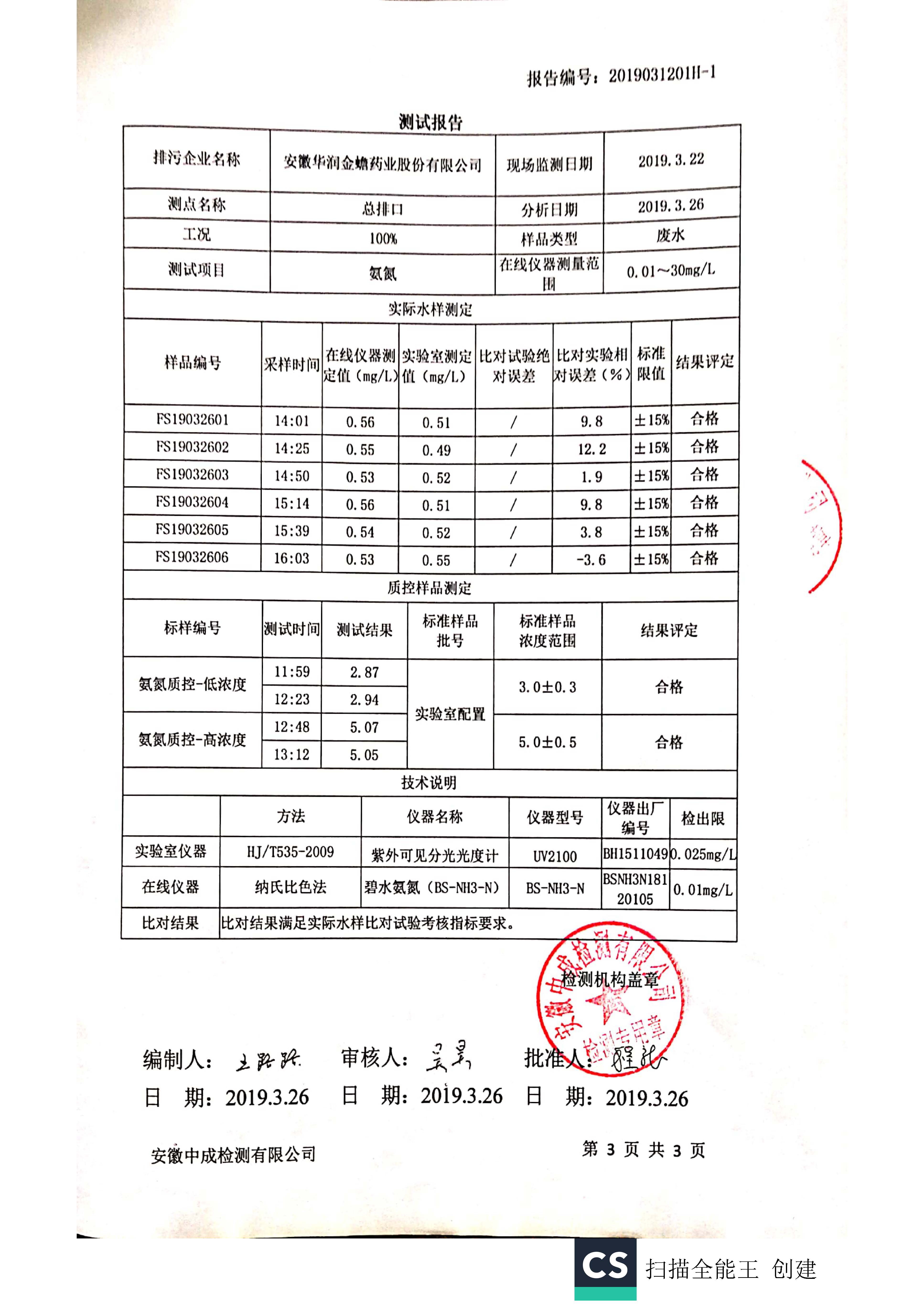 華潤金蟾污染物排放檢測報告(一季度)