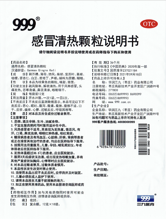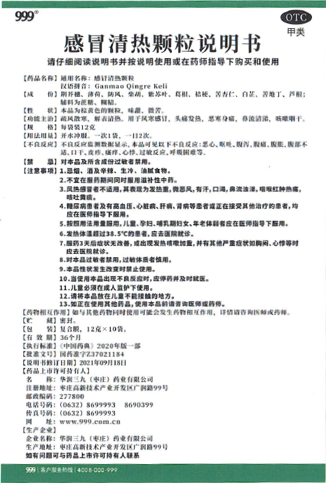疏風(fēng)散寒,解表清熱。用于風(fēng)寒感冒,頭痛發(fā)熱,惡寒身痛,鼻流清涕,咳嗽咽干。