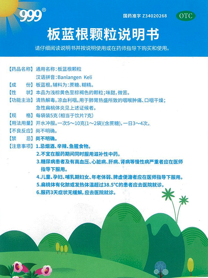 功能主治:清熱解毒,涼血利咽。用于肺胃熱盛所致的咽喉腫痛、口咽干燥;急性扁桃體炎見上述證候者。