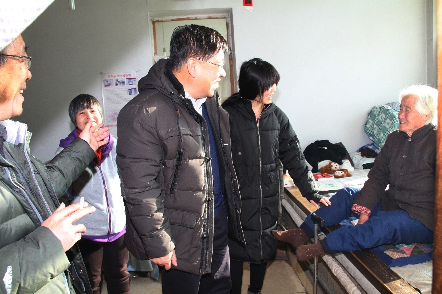 馮毅主席一行首先來到延慶區(qū)廣積屯村,走進(jìn)華潤高科員工聶玉榮的家,馮毅主席親切握著聶玉榮的手說:今天我代表華潤醫(yī)藥在春節(jié)到來前,看望您們?nèi)?,祝全家人健康幸福。聶玉榮及患病的愛人深表感謝領(lǐng)導(dǎo)的關(guān)懷和照顧。馮毅主席看到在炕上的80多歲老婆婆,關(guān)切的詢問老人家身體狀況,當(dāng)?shù)弥抑杏袃晌徊∪?,女兒還在上學(xué),全家僅靠聶玉榮一人收入生活時(shí),馮總鼓勵(lì)聶玉榮要堅(jiān)強(qiáng)的面對生活壓力,照顧好家中病人和女兒,他叮囑高科工會(huì)的同志要多關(guān)注困難員工的生活,多幫助他們解決后顧之憂。隨后,馮毅主席又來到華潤高科雙職工賀玉蓮、張愛利家中,看望重病的賀玉蓮,了解到賀玉蓮的病情后,馮毅主席鼓勵(lì)她要有信心要堅(jiān)強(qiáng),積極治療,早日康復(fù)。華潤高科總經(jīng)理助理方玲、工會(huì)主席朱琦、后勤部部長王建新隨同慰問。