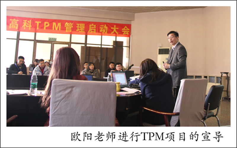 會議由公司生產總監(jiān)主持。會議的召開標志著公司全面推行TPM工作。會議公布了TPM領導小組及實施小組組織架構。推進TPM管理,旨在通過消滅生產的災害、事故、故障和其它浪費,并追求設備的安全、連續(xù)、穩(wěn)定,營造整潔的工作環(huán)境,打造設備標準化管理體系,提高員工綜合素質,提高生產綜合效率,提升現場管理水平,提升企業(yè)競爭力。