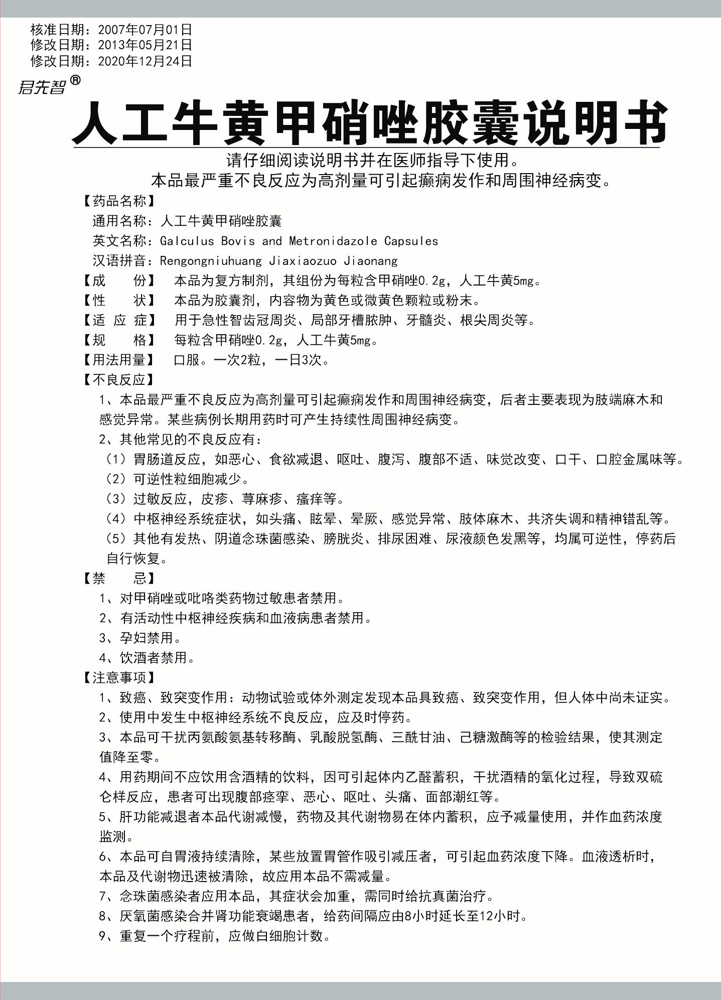人工牛黃甲硝唑膠囊