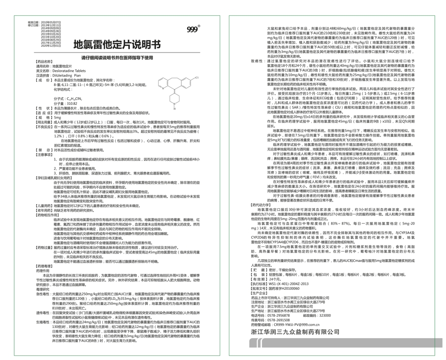 地氯雷他定片為第三代抗過敏藥,起效快,療效好,無嗜睡等副作用,一天一片,24小時持續(xù)有效,可與食物同時服用,用于緩解慢性特發(fā)性蕁麻疹及常年性過敏性鼻炎的全身及局部癥狀。