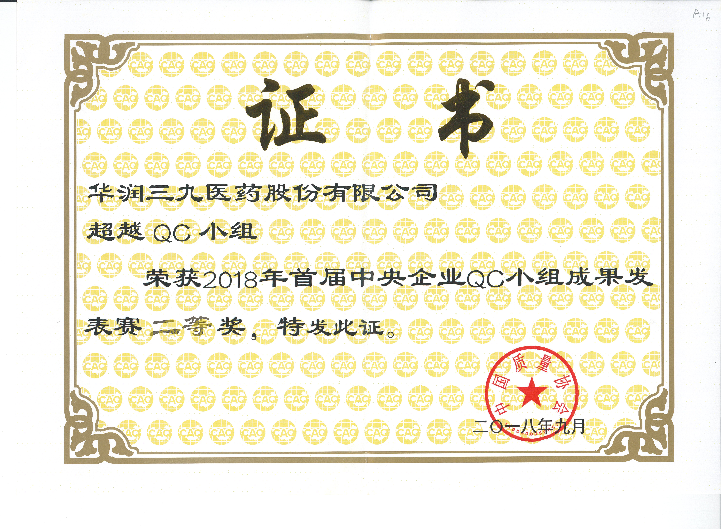 華潤三九(棗莊)榮獲首屆中央企業(yè)QC小組成果發(fā)表賽二等獎