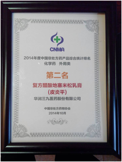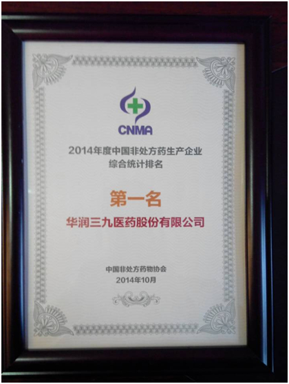 10月15日-16日,由中國(guó)非處方藥物協(xié)會(huì)主辦的“第十一屆中國(guó)自我藥療年會(huì)”在長(zhǎng)沙召開(kāi)。會(huì)議公布了2014年度中國(guó)非處方藥綜合統(tǒng)計(jì)排名及第二屆非處方藥品牌傳播獎(jiǎng)獲獎(jiǎng)名單,華潤(rùn)三九喜獲多項(xiàng)榮譽(yù)。其中,公司綜合排名繼2013年度之后,再次位居中國(guó)非處方藥生產(chǎn)企業(yè)榜首。