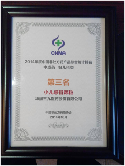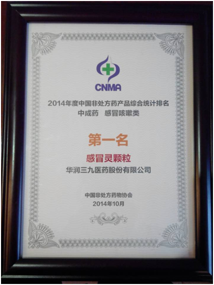 根據(jù)獲獎(jiǎng)名單,在綜合統(tǒng)計(jì)排名方面,華潤(rùn)三九榮獲企業(yè)綜合榜第一名;在非處方藥產(chǎn)品綜合統(tǒng)計(jì)排名方面,999感冒靈顆粒和強(qiáng)力枇杷露分別獲中成藥感冒咳嗽類的第一名和第四名,三九胃泰獲消化類第三名,999小兒感冒顆粒獲婦兒科類第三名,骨通貼膏獲外用類第四名,999皮炎平獲化藥外用類第二名,小兒氨酚黃那敏顆粒獲化藥兒科類第四名。此外,在品牌傳播獎(jiǎng)項(xiàng)方面,華潤(rùn)三九獲得五類獎(jiǎng)項(xiàng)中的三大獎(jiǎng):最佳平面廣告獎(jiǎng),最佳電視廣告獎(jiǎng)和最佳品牌傳播獎(jiǎng)。 (曾福)
