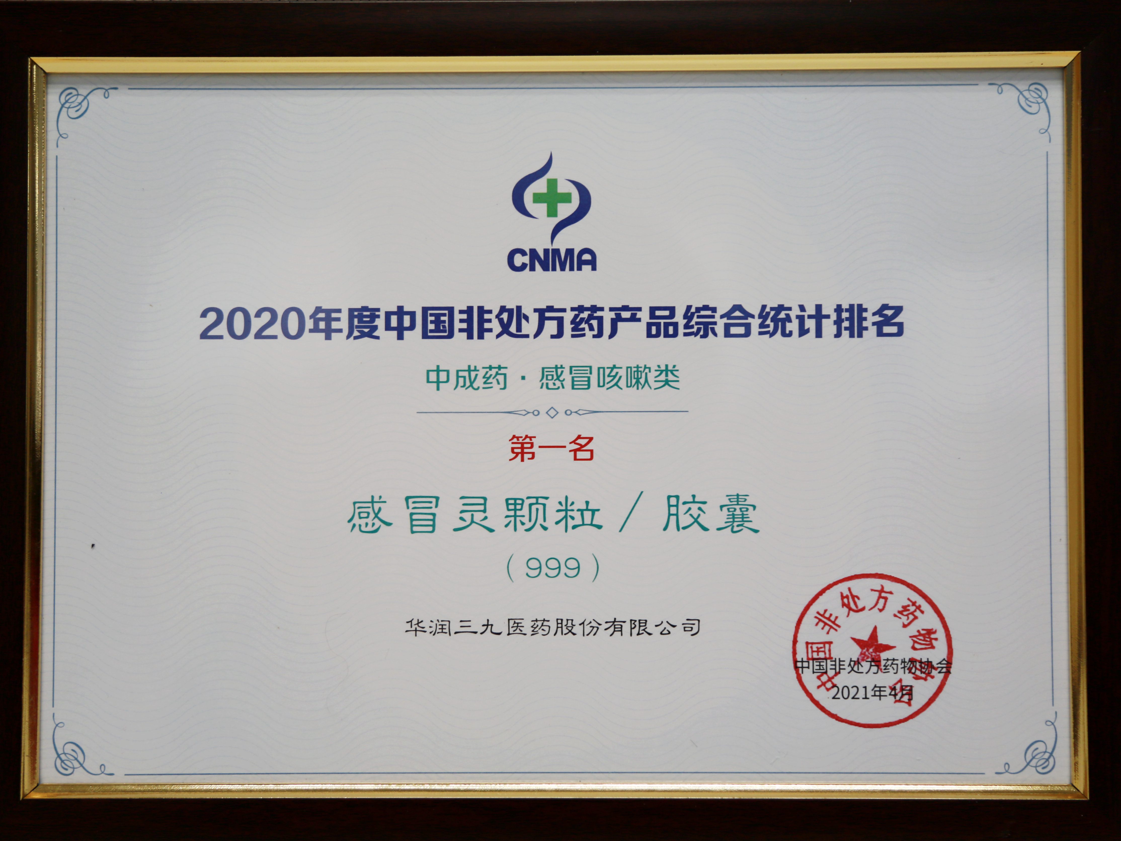 4月1日,由中國(guó)非處方藥協(xié)會(huì)主辦的“第十七屆中國(guó)自我藥療年會(huì)”,發(fā)布了2020年度中國(guó)非處方藥生產(chǎn)企業(yè)綜合統(tǒng)計(jì)排名,華潤(rùn)三九再次榮登榜首。此外,999感冒靈顆粒/膠囊連續(xù)九年蟬聯(lián)感冒咳嗽類(中成藥)第一名,999復(fù)方醋酸地塞米松乳膏、多烯磷脂酰膽堿膠囊(易善復(fù))、999復(fù)方感冒靈顆粒在各自的品類排名中斬獲前三甲。