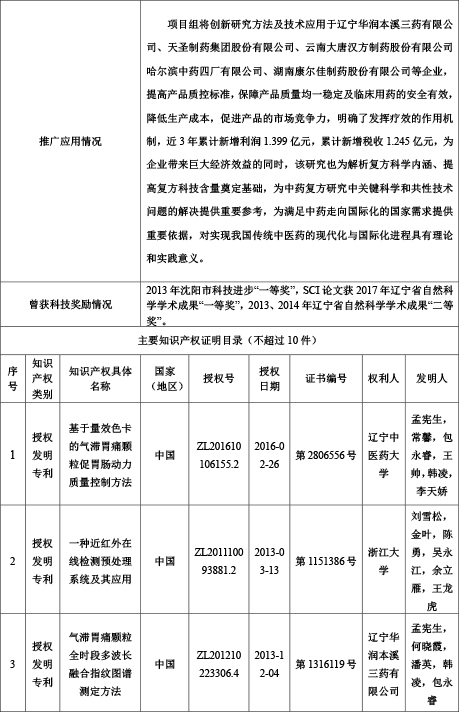 遼寧中醫(yī)藥大學(xué)擬推薦的教育部2018年度高等學(xué)校科學(xué)研究優(yōu)秀成果獎(科學(xué)技術(shù))項目公示