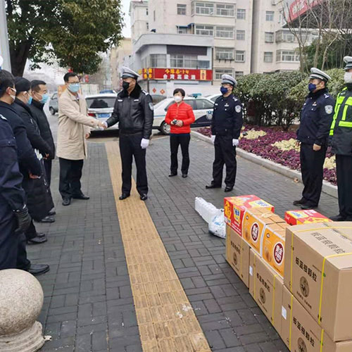 2月6日下午,華潤三九(棗莊)負(fù)責(zé)人謝志堅(jiān)、朱曉倩帶隊(duì),將50箱板藍(lán)根藥品送至棗莊市高新區(qū)管委會,并同高新區(qū)管委會韓耀輝主任和經(jīng)發(fā)局崔玉紅局長一同對高新區(qū)公安分局民警和戰(zhàn)斗在一線的值班卡點(diǎn)交通警察進(jìn)行了慰問。