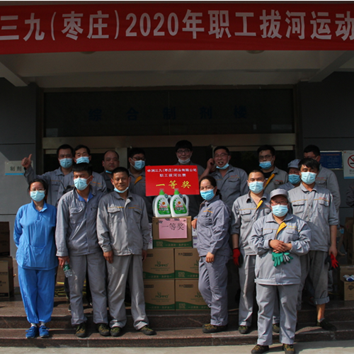 為迎接五一節(jié)的到來,在疫情緩解的前提下,華潤三九(棗莊)于4月30日下午舉辦了2020年職工拔河運(yùn)動會,此次活動要求參與者佩戴口罩,在積極比賽的同時(shí)做好疫情防護(hù)工作。