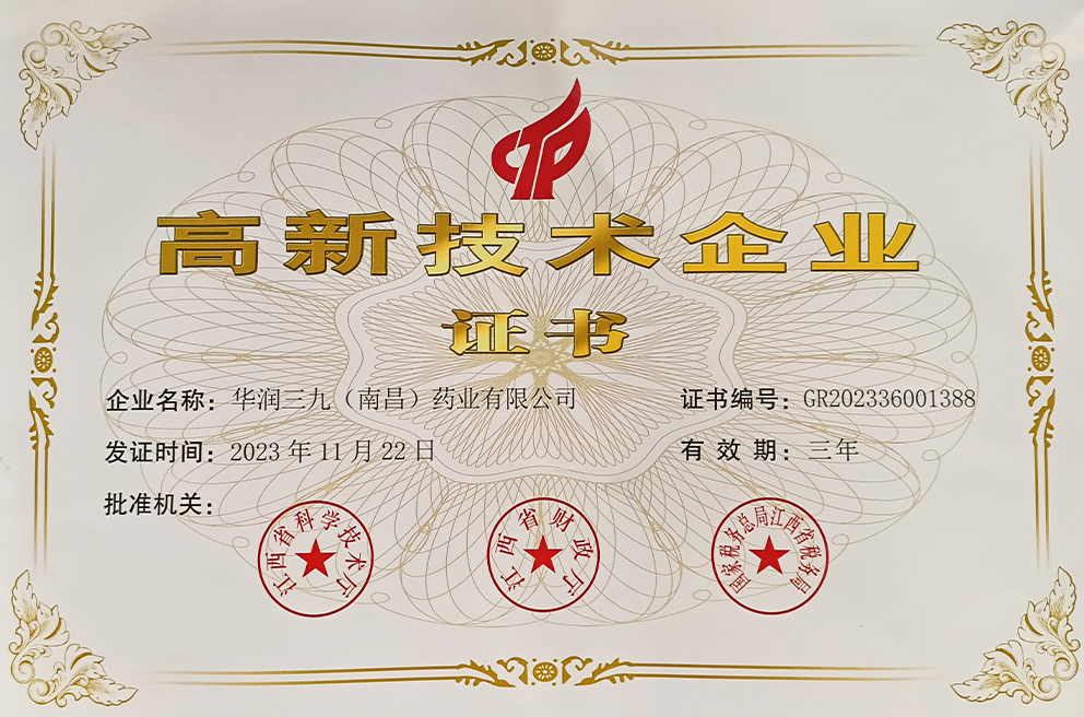 華潤(rùn)三九(南昌)再次被認(rèn)定為“國(guó)家高新技術(shù)企業(yè)”