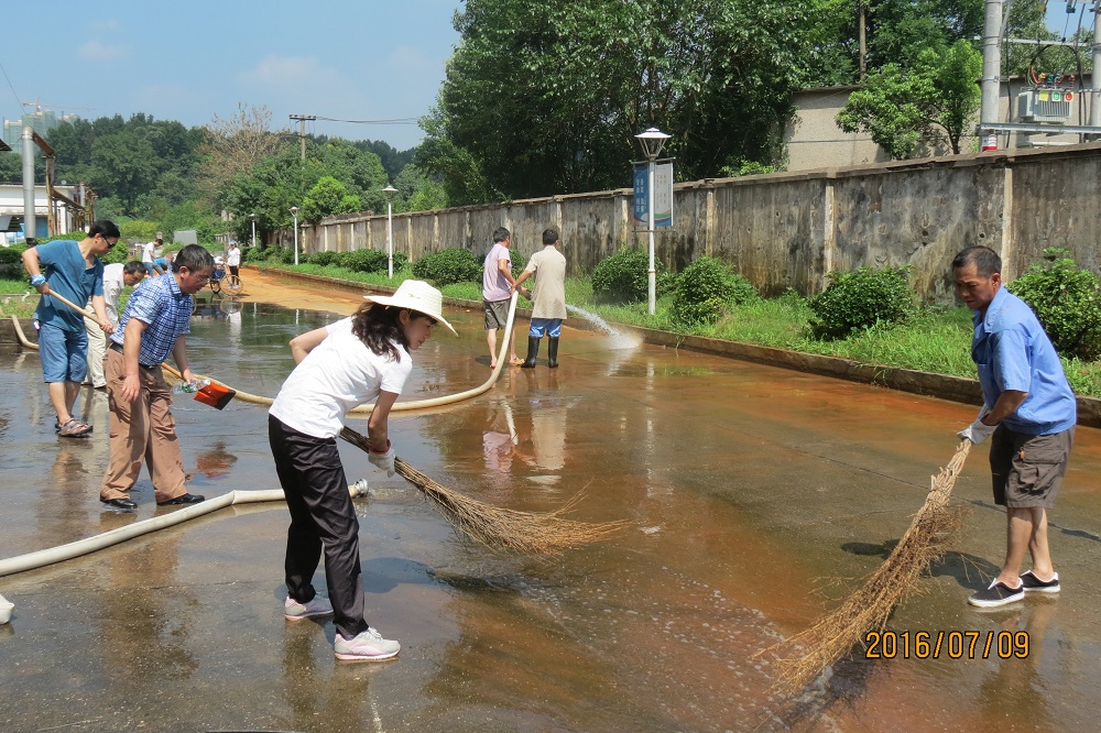 第一黨支部對廠區(qū)后部圍墻附近廢舊設(shè)備、雜物進行清理,堵塞圍墻漏洞,清理排洪溝,確保雨水排放通暢;第三黨支部購回沙袋,灌沙備用,同時對廠區(qū)道路前期因下雨被淹沉積的泥沙污物進行清理沖洗,確保廠區(qū)清潔,物流通暢。大家頂著烈日埋頭苦干,個個爭當防汛“排頭兵”,以實際行動踐行“兩學(xué)一做”。