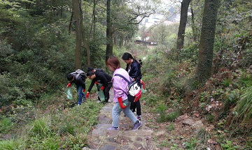 在大眾山登山步道,團員們分隊行動,分工合作,帶著夾子、袋子等工具撿拾步道旁、草叢中的煙頭、飲料瓶、塑料袋等垃圾,團員們青春飛揚的身影成為大眾山一道美麗的風景。經過兩個小時的奮戰(zhàn),每個人手中都已“碩果累累”,共撿拾了近10袋垃圾,并統(tǒng)一送到環(huán)衛(wèi)回收站集中處理。