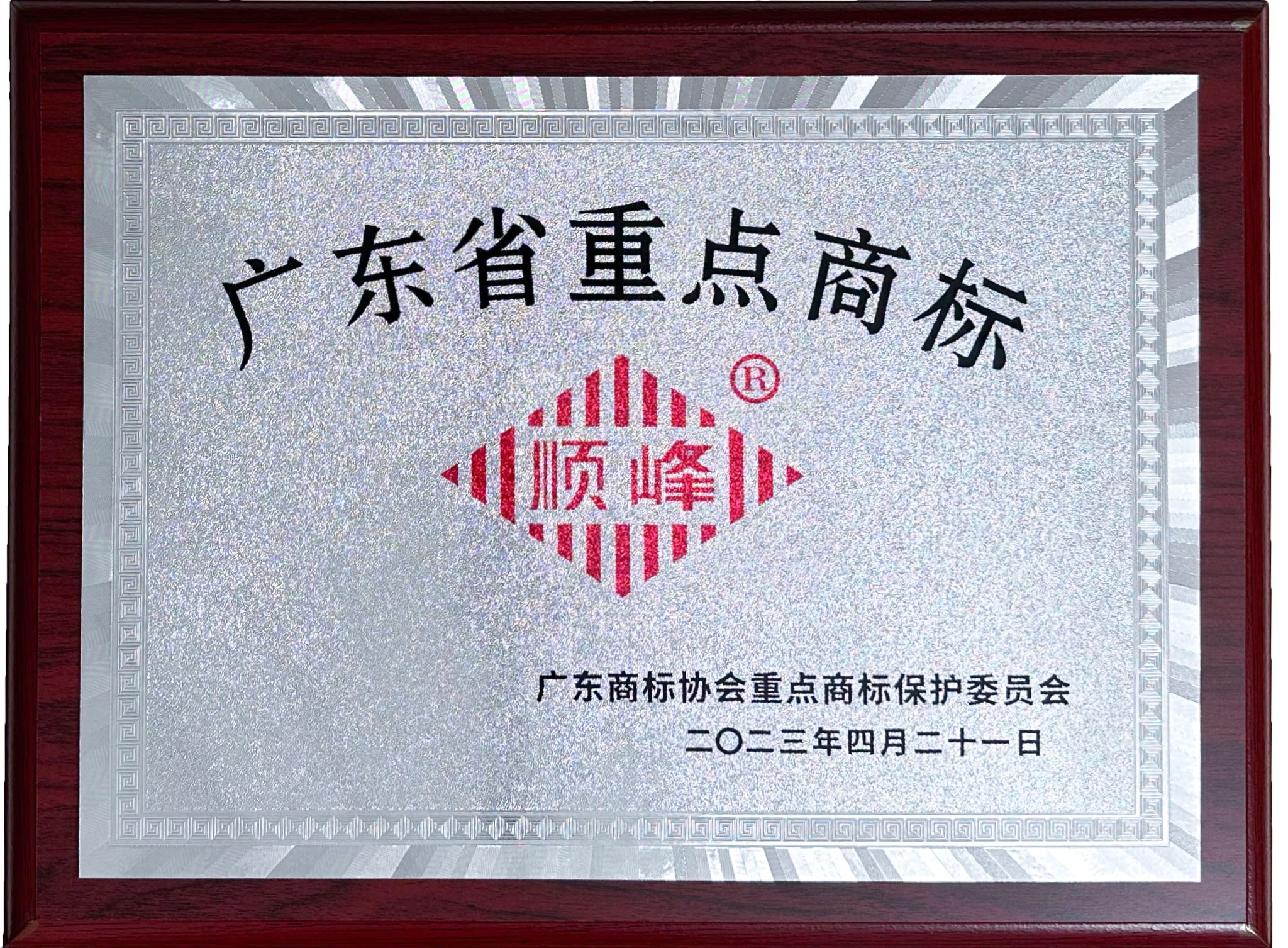 熱烈祝賀我公司“順峰”商標(biāo)榮獲廣東省重點(diǎn)商標(biāo)