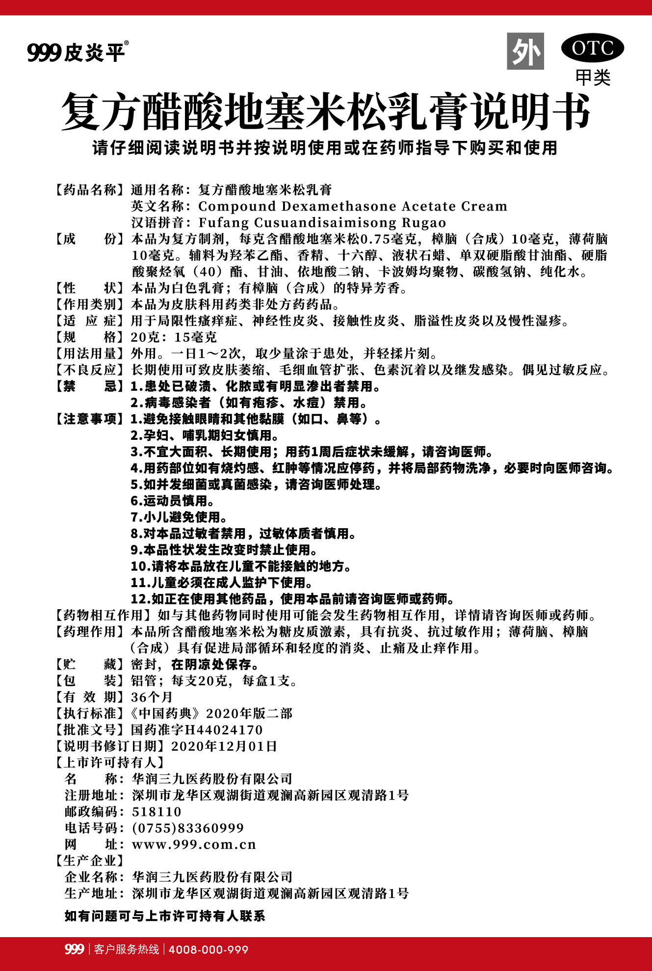 (999皮炎平)復(fù)方醋酸地塞米松乳膏